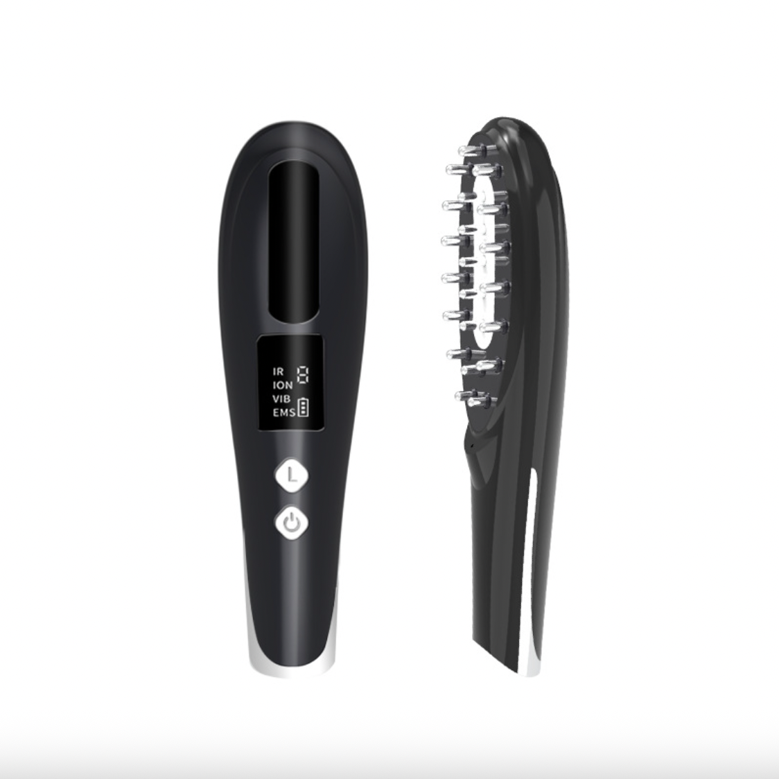 Апарат для росту волосся має 3 функції: ультразвукова терапія (іонофорез з негативними іонами “-“) + міостимуляція EMS (мікротоки) + ЛЕД – терапія (фототерапія) + вібромасаж