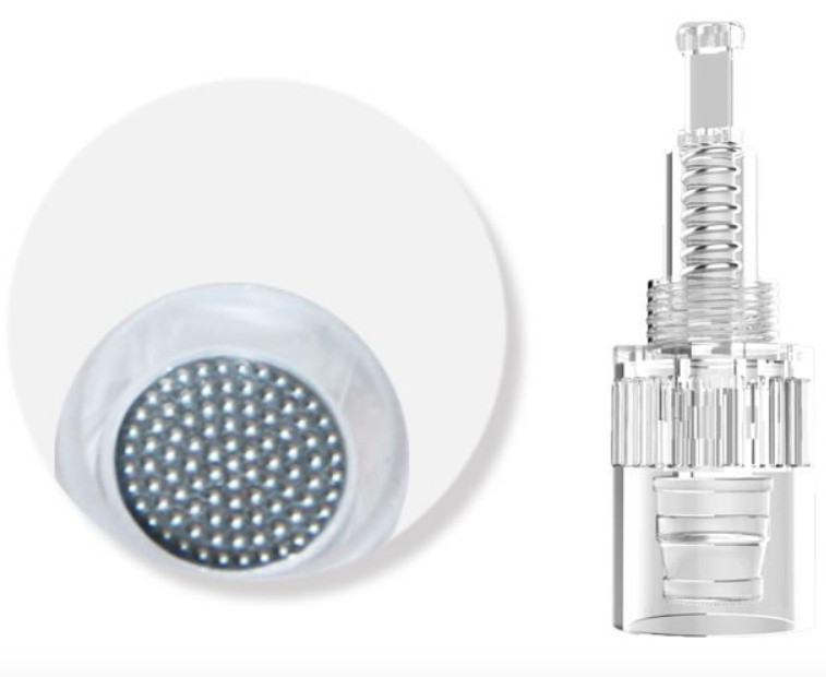 Наноиглы не проколюють шкіру обличчя і тіла, як насадки з 9, 12 і 36 голками. На спеціальній пластині з хірургічної сталі є безліч (60 – 70) зубчастих виступів, які менше травмують шкіру, ніж насадки з голками. Ефективність таких картриджів краще голчастих. Розмір “виступів” 0,2 мм.